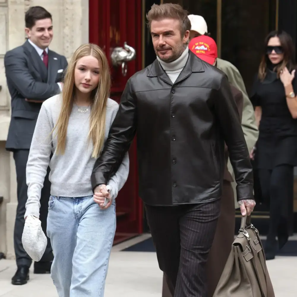 David Beckham sosteniendo un bolso Birkin de Hermès con su hija Harper Beckham