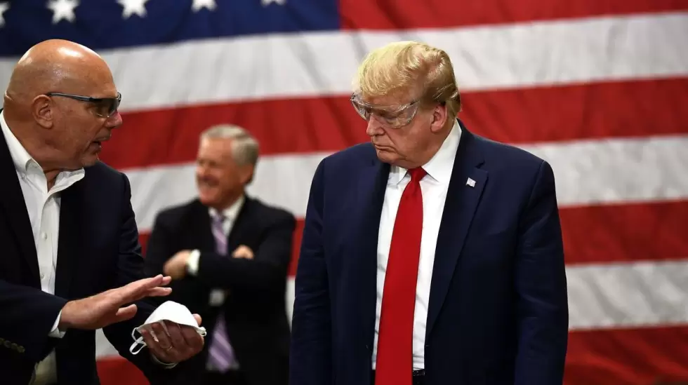 Sin embargo, Trump sorprendió a los trabajadores y directivos al aparecer sin ningún tipo de protección respiratoria, pese a directivas internas que dicen que todas las personas deben usar tapabocas dentro de la fábrica en todo momento.