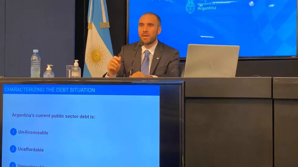 En una conferencia web que el ministro ofreció en inglés a acreedores y periodistas, Martín Guzmán volvió a sostener que la deuda argentina es impagable, infinanciable e insostenible: "Ya llegamos a un límite del uso de reservas para pagar deuda en moneda extranjera. No podemos seguir haciéndolo". Su mayor desafío, expresó, es lograr una “operación sostenible sobre la deuda”, y no una que requiera ser compensada pocos años después.